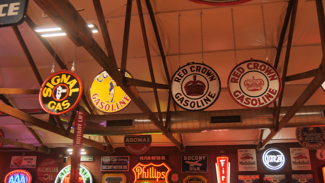 signs, advertising displays, gas pump globes, and oil cans—this sale is truly a